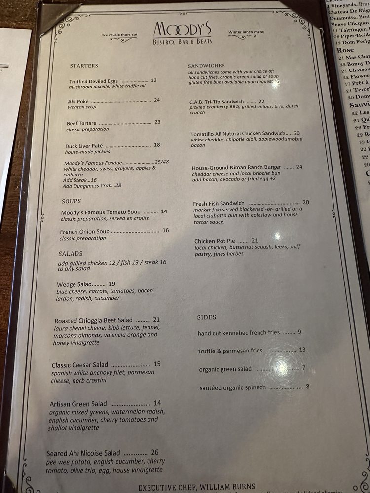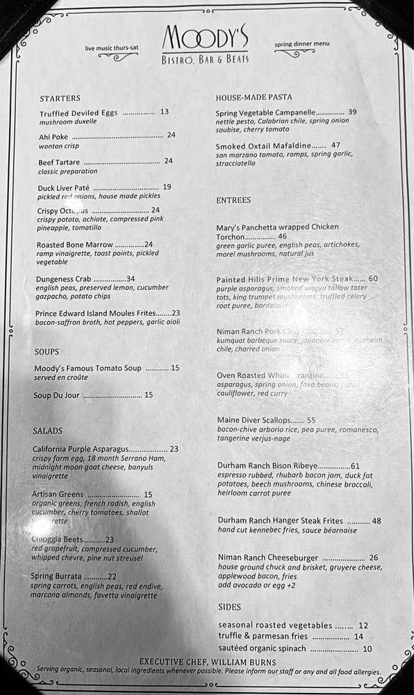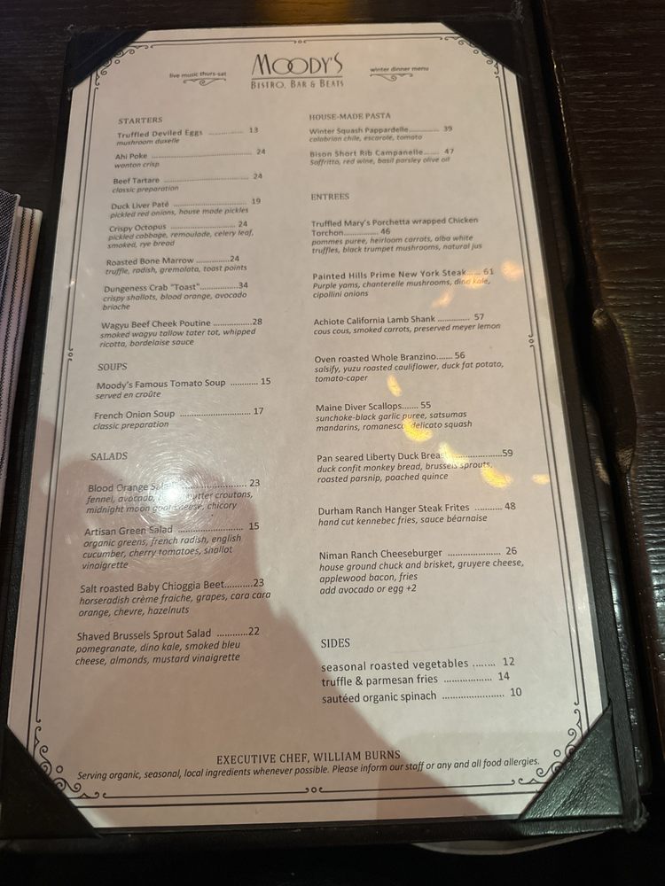 Moody’s Bistro Bar & Beats offers a diverse menu with vegan and vegetarian options, creating a welcoming atmosphere for all diners. Their craft cocktails, like the Copper & Cask and Zen Master #2, showcase innovative twists on classic recipes. The outdoor seating area provides a relaxing environment, perfect for enjoying live music on Friday and Saturday evenings. Customers rave about the flavorful dishes, like the beet salad and fish sandwich, highlighting the attention to detail and quality ingredients. The bar experience is top-notch with friendly and attentive service, making it a must-visit spot in Truckee. Whether you're looking for a refreshing drink or a satisfying meal, Moody’s Bistro Bar & Beats delivers a memorable dining experience that keeps customers coming back for more.